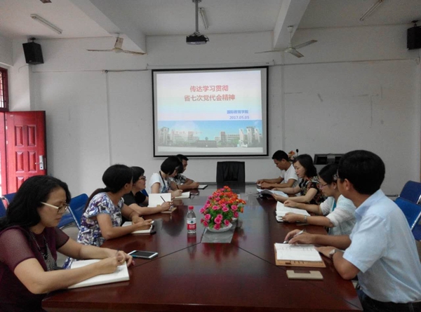 本校5月6日讯(国际教育学院报道)2017年5月5日下午,国际教育学院召开党员及教师代表会议,传达学习省第七次党代会精神。