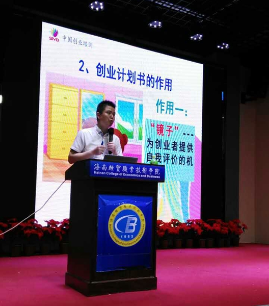 本校5月13日讯(招生就业办 国际教育学院报道)5月12日,海口鑫弘茂职业技能培训学校国家级创业培训师徐剑涛应邀到校,为参加2016年第二届中国“互联网+”大学生创新创业大赛的学生作专项辅导讲座。